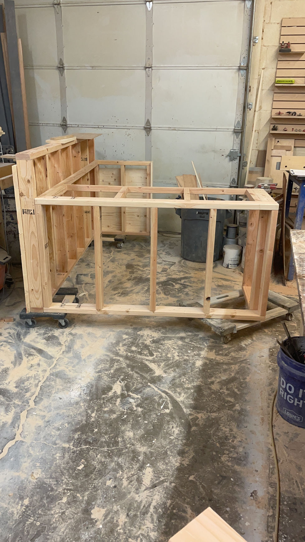A collection of images showcasing various woodworking projects, including custom furniture, cabinetry solutions, and outdoor structures. The images depict woodworking setups, tools, materials, and finished wooden products.